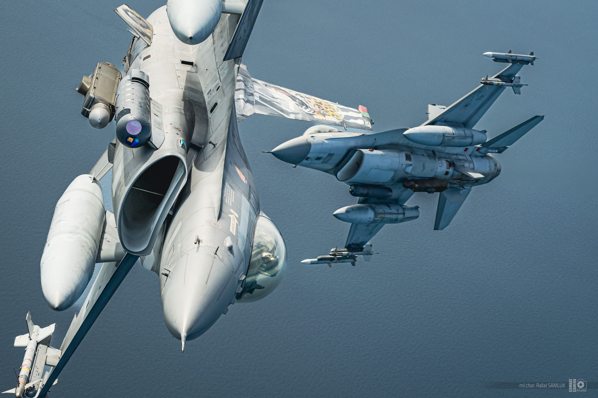 Demonstração sobre o Báltico de parelha de F-16AM da Força Aérea Portuguesa a operar em contexto NATO a 50 km da fronteira com Kaliningrad (Federação Russa)
